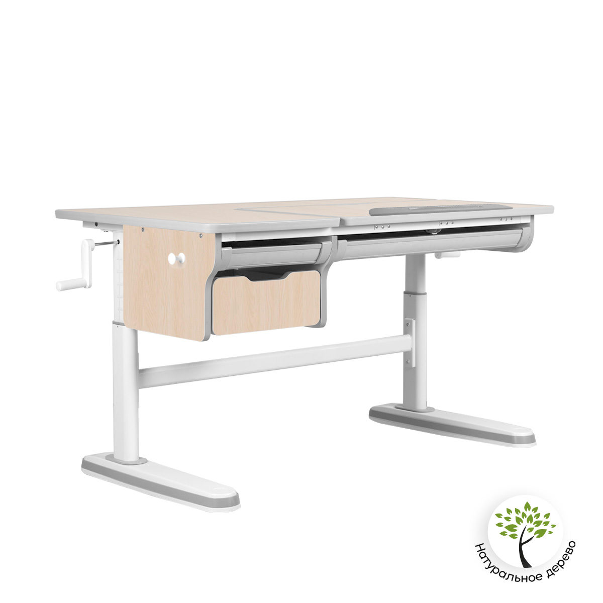 Тип регулировки высоты механический – по бокам парты расположены съёмные ручки-трещетки. Покрутив их по часовой стрелке, вы поднимете парту выше, а если начать крутить ручку против часовой стрелки, парта начнет опускаться вниз. Менять высоту парты очень легко, с таким занятием справится даже ребёнок.